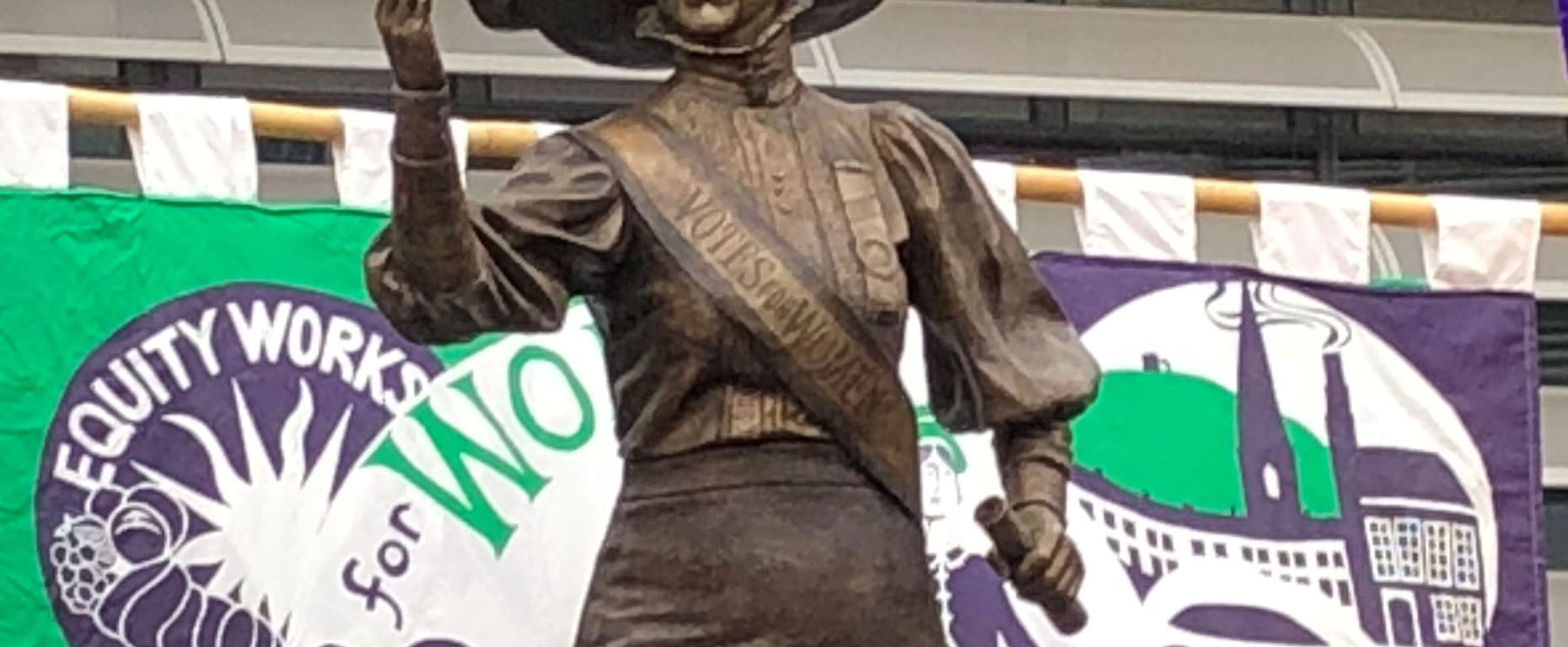 On 4 February 2018 a bronze statue of Alice Hawkins was unveiled in Leicester’s new market square, near where she had addressed crowds in the early years of the twentieth century. The seven foot statue was funded by local businessman Jamie Lewis and the sculptor was Sean Hedges-Quinn. Alice is wearing her speaker’s ribbon, her hunger strike medal and the Holloway brooch designed by Sylvia Pankhurst and awarded to the members of the WSPU who had been imprisoned.